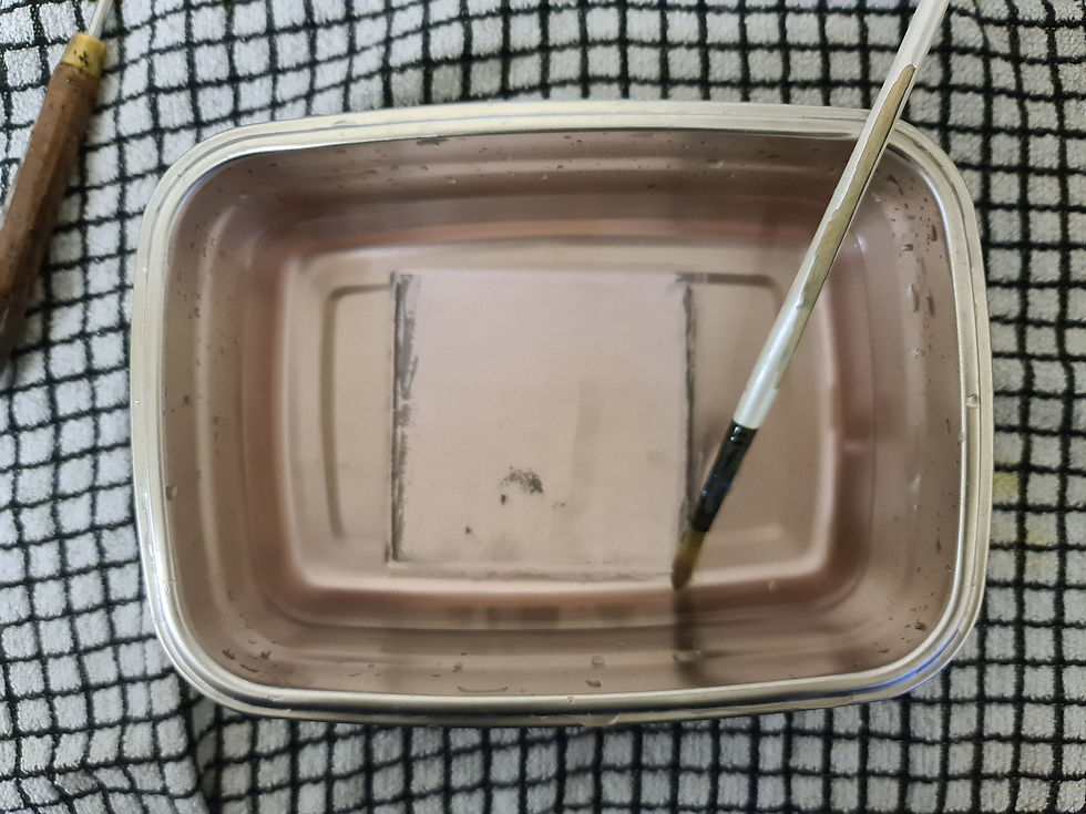 In my 1:1, Maddy suggested that I experiment with chemical processes and burning after the emulsion lift, so I used sanitiser, thick bleach, spray bleach, fairy liquid, and I let them sit for 5 minutes. Here's my setup: