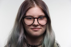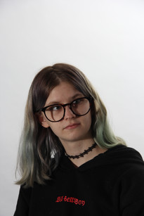 I used a round metal reflector, 2 soft boxes to light the background, a soft box to light the face, and a polyboard on either side. I used a black one to block some of the light from the metal reflector, and this was the most successful. The second polyboard was white and it reflected white light onto the right side of the face.